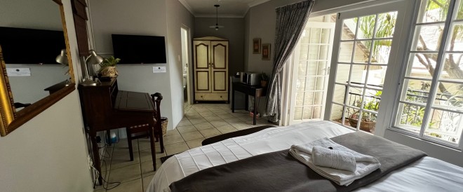 Mango room is situated beneath a Natal Mango tree in a small courtyard with its own entrance.